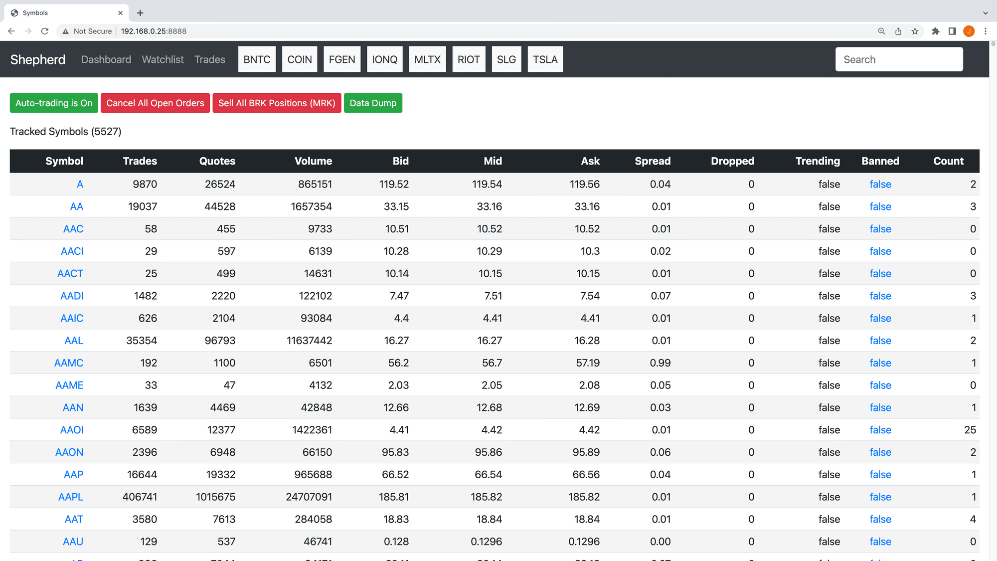 Having a built- in web interface has been immensely helpful in understanding the inner workings of a complex project, in that you can explore all of the data structures, visualize data, and dive deep into trades and see why they were triggered and their current status. To help bring this to life, I have included a series of screenshots. These not only offer a glimpse into the user interface of the trading system but also provide visual demonstrations of the system's key structural and functional elements.